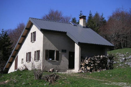 Grande bâtisse pierre (pied montagne d’Ambel). Grande salle, tables/bancs, poêle à bois. Couchages inter-étage bas-flancs. Pas d’eau.