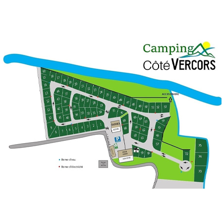 Calme et ombragé, situé sur les berges de la rivière « la Bourne ». Il offre 74 emplacements, pour tentes, caravanes et camping-cars incl. 2 mobil-homes, 5 tentes équipées « BENGALI » et une caravane en location. Les emplacements sont de 150 à 250m2 et entourés par les grandes haies. Le camping propose une machine à laver, un sèche-linge, un nouveau bloc sanitaire de 2019 qui est nettoyé deux fois par jour, et un snack.