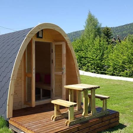 Vous y trouverez de nombreux emplacements pour tente, mais aussi des cabanes « cocon » pour votre étape itinérante . Coté équipement, vous pourrez profiter de la piscine couverte l’été et des aires de jeux pour les enfants. Côté animation, vous aurez le choix entre un grand nombre d’activités de plein air accompagné pour découvrir en bonne compagnie toutes les richesses du territoire du Vercors.