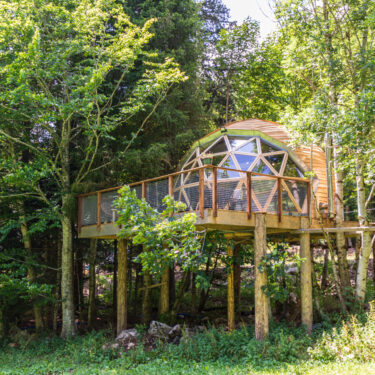 – Cabane dans les arbres 2 adultes, 2 enfants, 15m2, 1 lit double, 1 lit superposé.